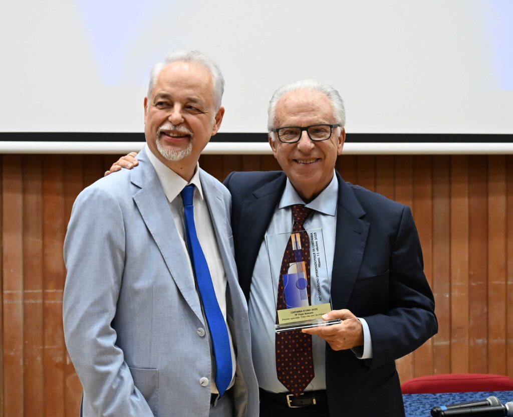 David Russell, Chitarra d’Oro Una Vita per la chitarra 2024, premiato da Frédéric Zigante.
